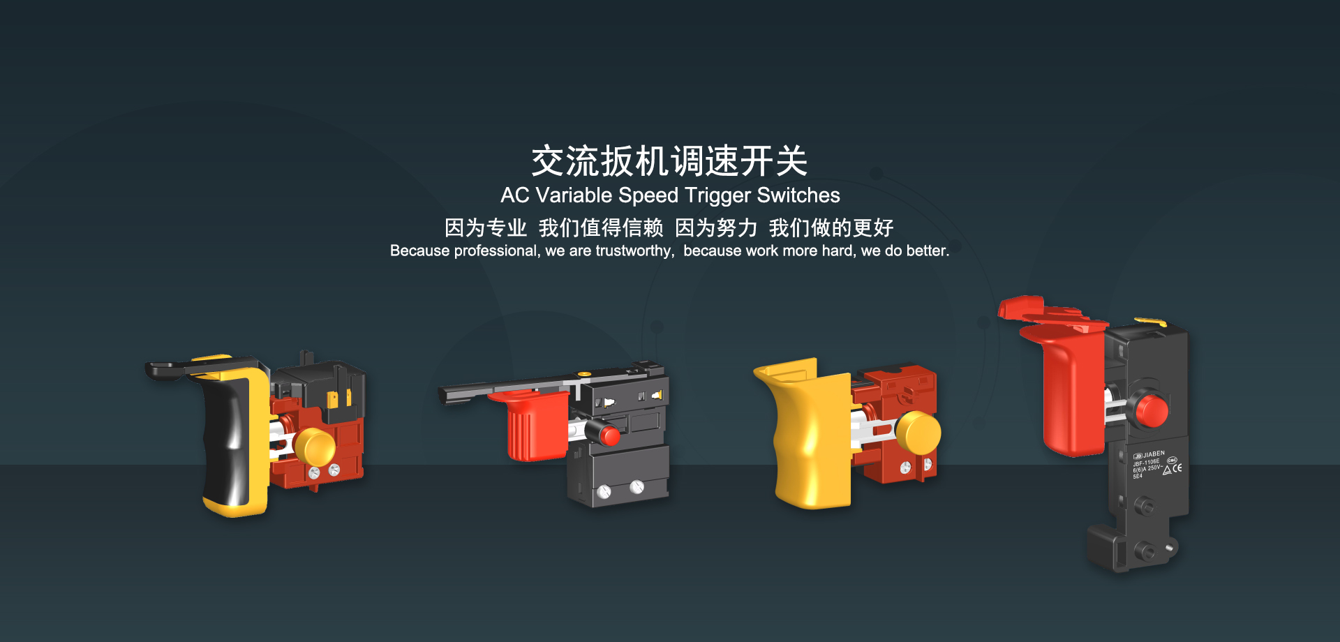 浙江佳奔電子有限公司始建于1986年,坐落于浙江省樂清市虹橋鎮(zhèn)東電子信息產(chǎn)業(yè)園內(nèi),現(xiàn)有職工700多人,資產(chǎn)總額超3億元。公司主要經(jīng)營“JIABEN”牌微動(dòng)開關(guān)、蹺板開關(guān)、按鈕開關(guān)、扳機(jī)開關(guān)、調(diào)速開關(guān)和電位器開關(guān)等各類交、直流器具開關(guān)和各類交、直流線路板模塊等產(chǎn)品,主要應(yīng)用于交、直流電動(dòng)工具、電動(dòng)園林工具、清潔器具、家用電器和小型機(jī)床等行業(yè),是集產(chǎn)品設(shè)計(jì)、研發(fā)、制造、銷售和服務(wù)于一體的國家高新技術(shù)企業(yè)。JIABEN was founded in 1986, located in East Electronic Information Industry Park, Hongqiao Town, Yueqing City, Zhejiang Proviance, existing staff more than 700 peoples, more than 300 million RMB worth of assets. Company is mainly engaged in "JIABEN" brand Micro Switch, Rocker Switch, Push-button Switch, Trigger Switch, Speed Regulating Switch, Potentiometer Switch and other kinds of appliance switch and all kinds of AC or DC circuit board module, such as more than 100 series, 8000 kinds of models of products, mainly used in AC or DC Power-tools, Power Gardening Tools, Cleaning Appliances, Household Appliances and Small Machine Tool and other industries, is the collection product design, research and development, manufacturing, sales and service in one of the national high and new technology enterprise.